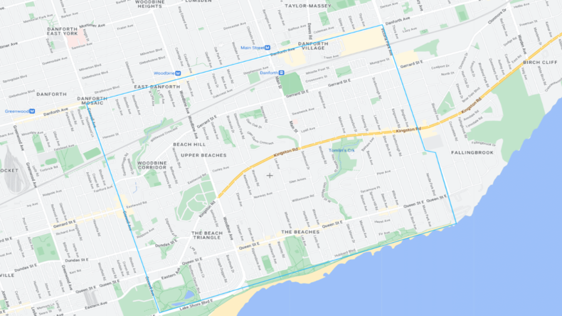 - East of Coxwell Avenue